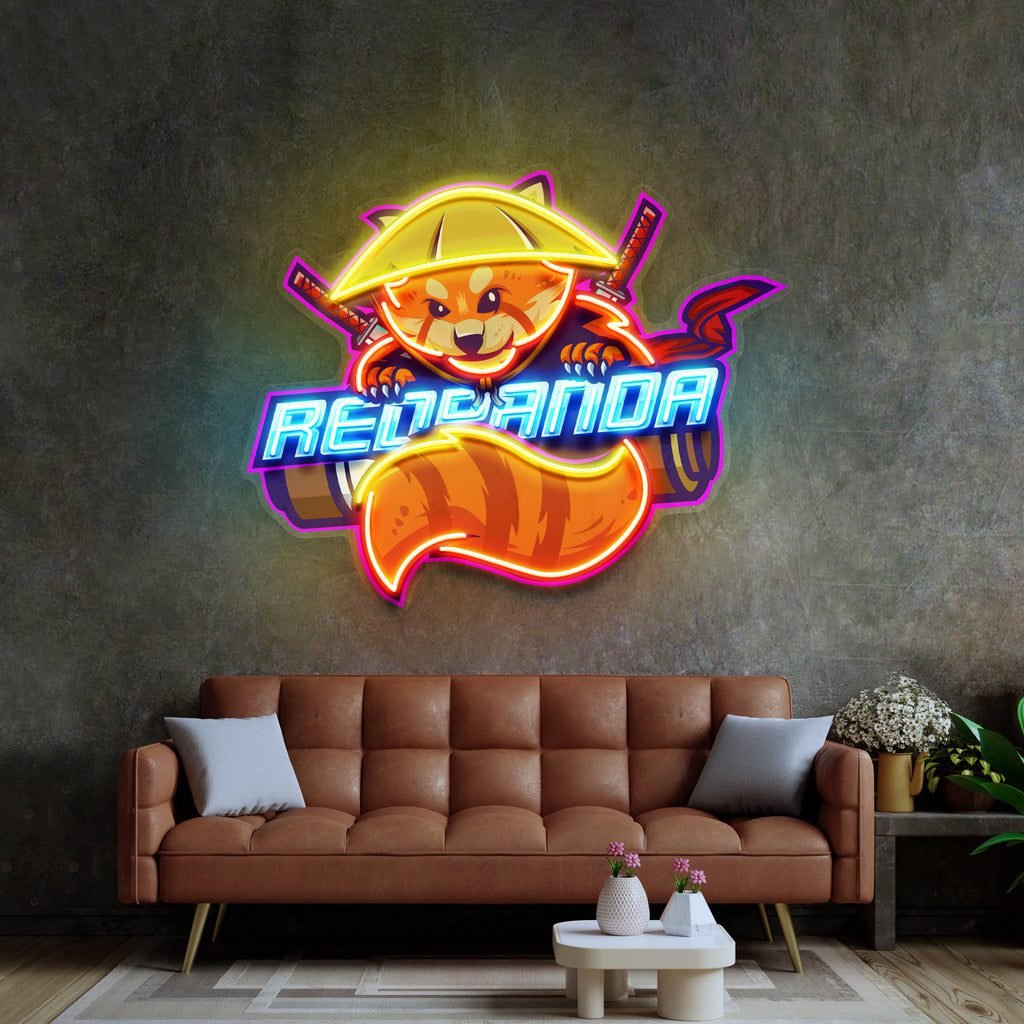 Red Panda Japan Samurai LED Neon Sign Light Pop Art